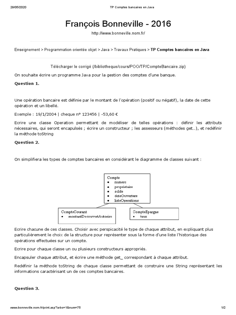 Tp Comptes Bancaires En Java Classe Informatique Java Langage De Programmation Boulangerie St Methode Magog
